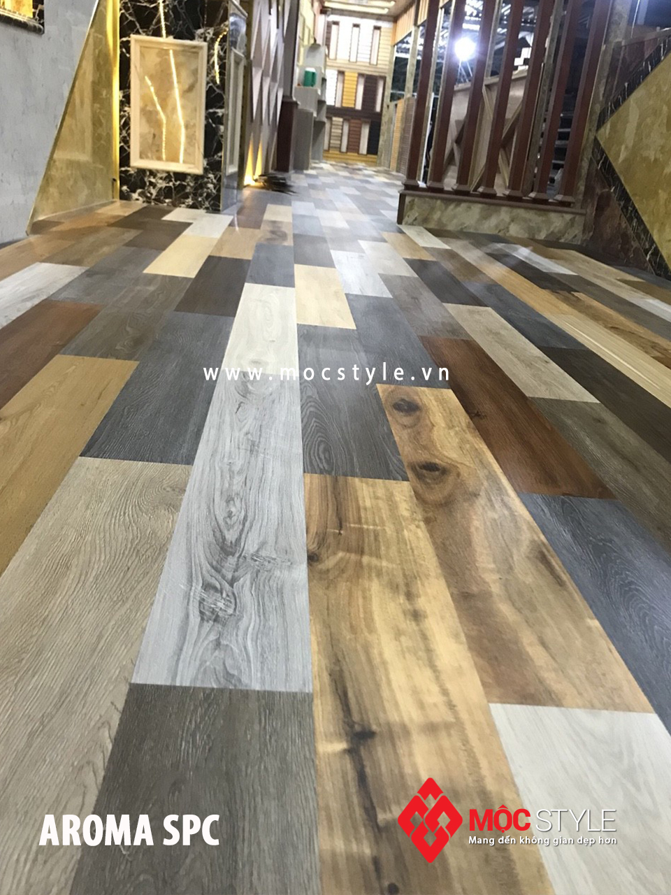 Sàn nhựa Aroma Spc đặc biệt này được thực hiện tại đường Phạm Hùng, Huyện Bình Chánh. Công ty TNHH Mocstyle hân hạnh thực hiện công trình này.