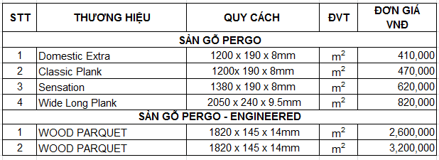 - Đơn giá trên là giá vật tư của sàn gỗ.