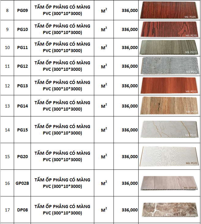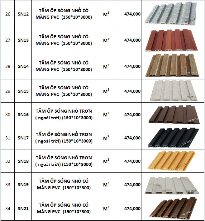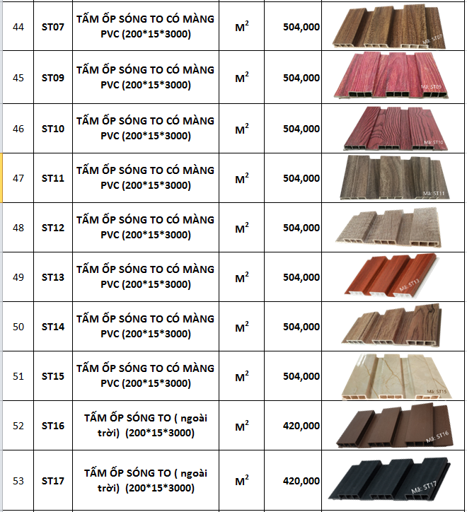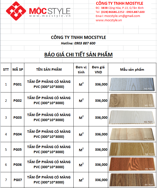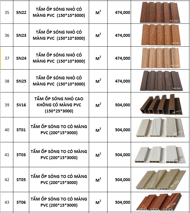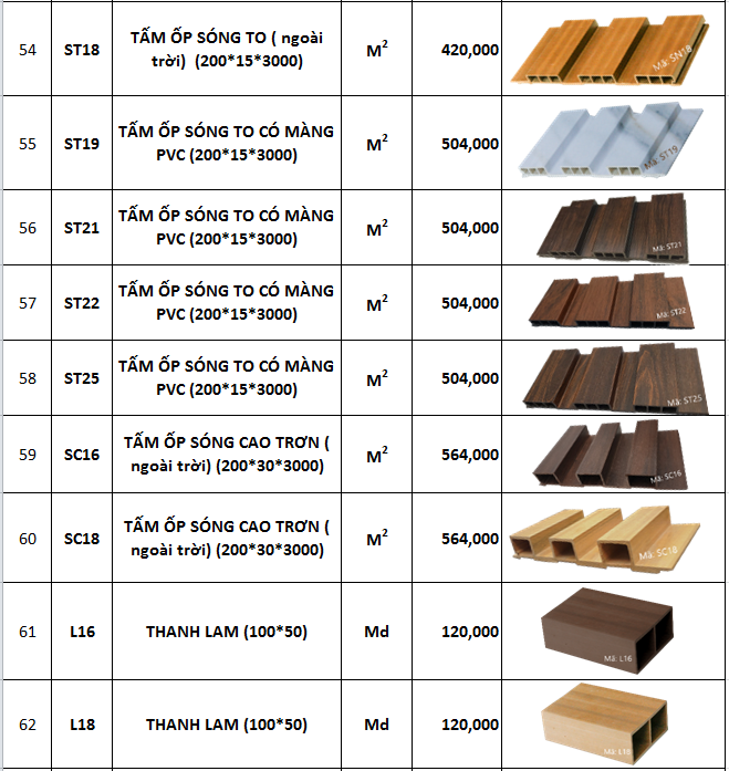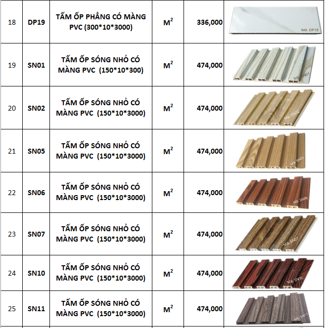 Bảng báo giá tấm ốp tường, trần Luxwood: