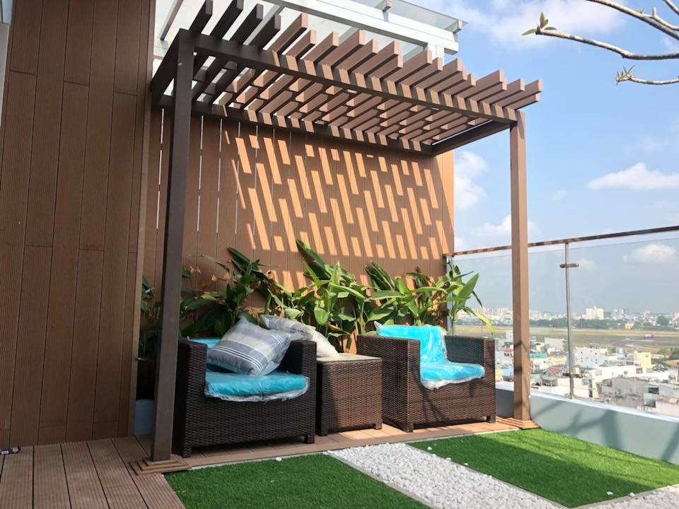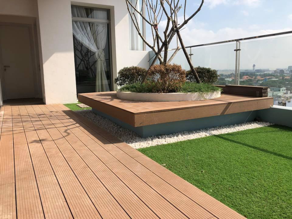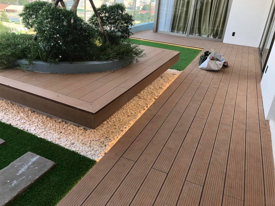 Hình ảnh công trình gỗ nhựa AWood WPC lót sàn ốp tường và giàn hoa: