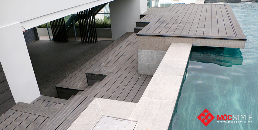 Khi mà nhu cầu sàn hồ bơi cho Penthouse yêu cầu cao vể tính thẩm mỹ và kỹ thuật thi công thì Sàn gỗ AWood luôn đáp ứng được điều đó. AWood có nhiều màu sắc để chọn lựa, bề mặt chống trơn trượt, chịu nắng mưa, không mối mọt. Thời gian sử dụng trên 10 năm và đặc biệt AWood còn thân thiện môi trường.