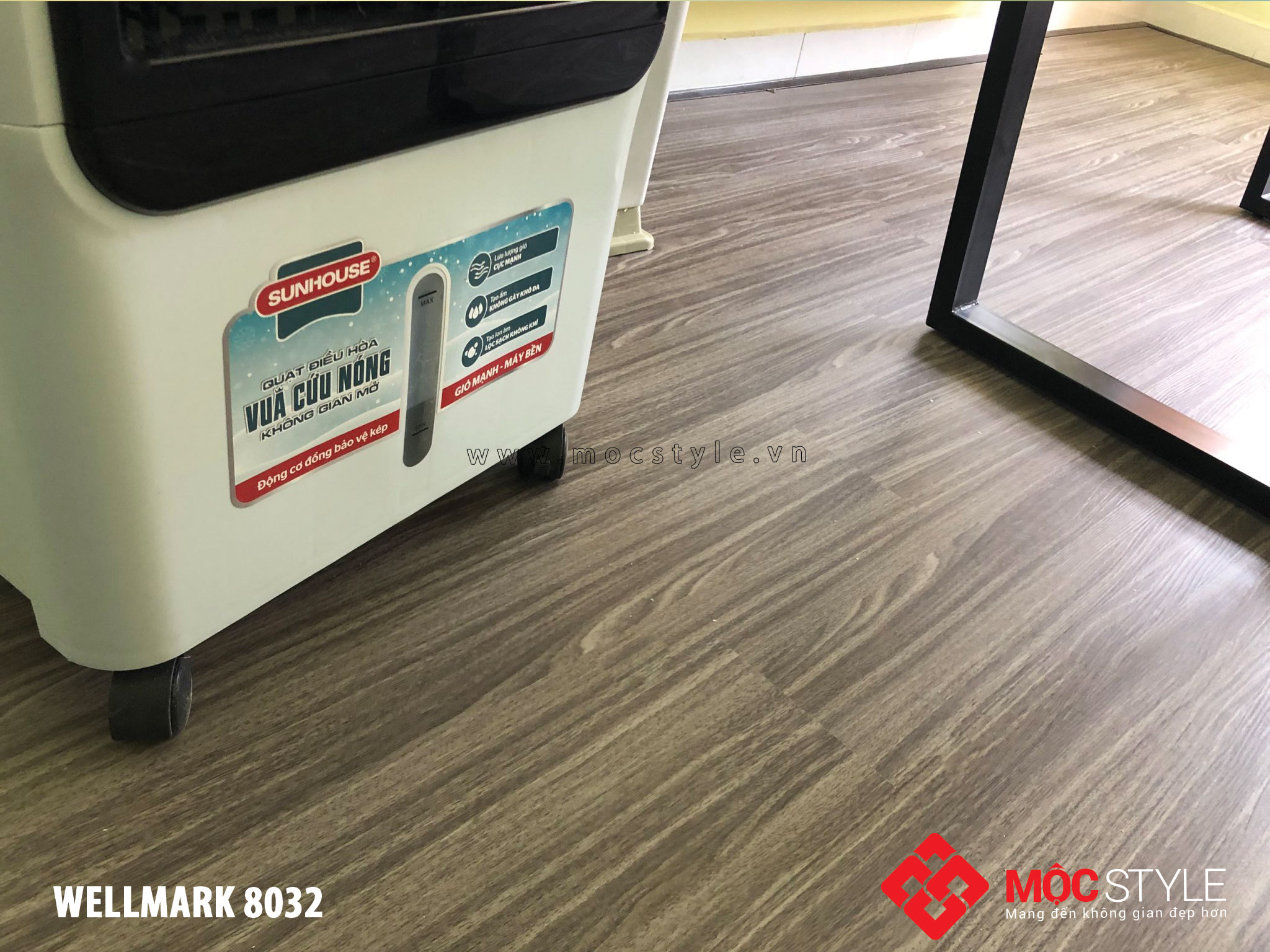 Chính vì làm từ nhựa và bột đá nên sàn hèm khóa Wellmark 8032 có khả năng chống nước hoàn toàn 100%. Chủ nhân có thể lau chùi sàn bằng nước thoải mái mà không phải lo nghĩ về chuyện sưng phồng. Chính đặc tính ưu việt này là lý do cốt lõi để khách hàng của Công ty Mocstyle lựa chọn sản phẩm này. Wellmark 8032 phù hợp với các hộ gia đình mới sinh em bé vì hay tè dầm, các khách hàng là chủ các cửa hàng đồ ăn, thức uống, trung tâm mua sắm, ...