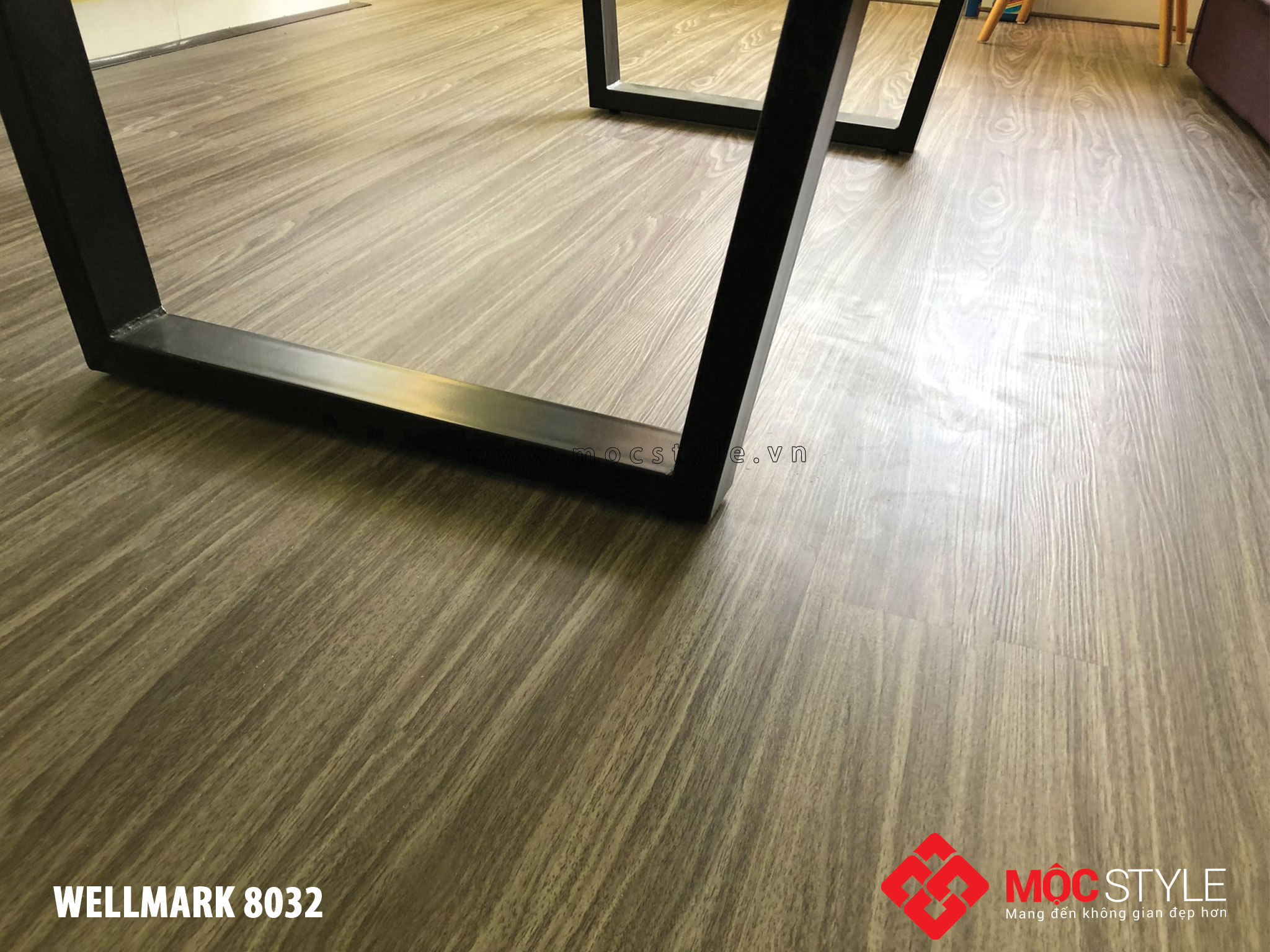 Sàn nhựa hèm khóa Wellmark 8032 được cấu tạo từ hạt nhựa nguyên sinh và bột đá nên có độ cứng chắc chắn giúp cho sàn ổn định khi được lót trên lớp xốp mà không cần phải dán keo hay đóng đinh xuống sàn.
