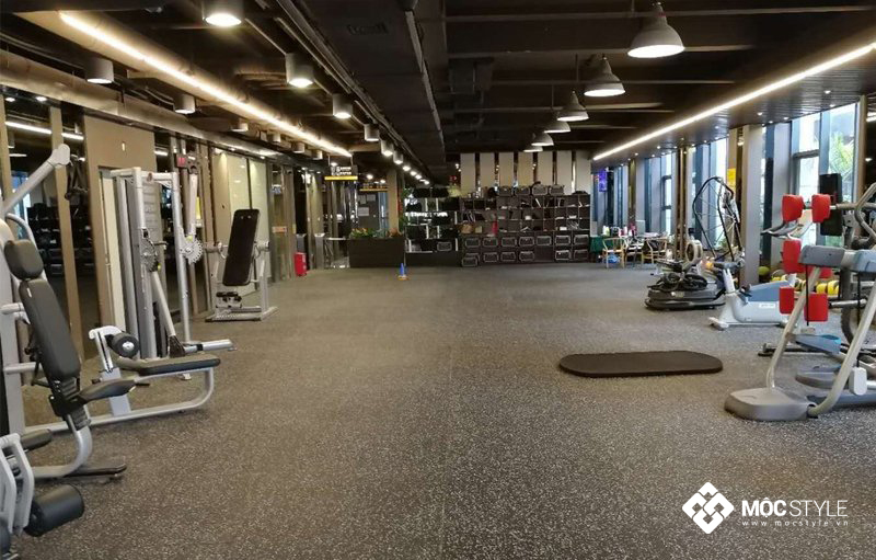 - Phòng tập gym – nơi hướng đến phong cách hiện đại, sang trọng và cao cấp cần sử dụng vật liệu sàn cao cấp tương ứng và đáp ứng được tính thẩm mỹ.