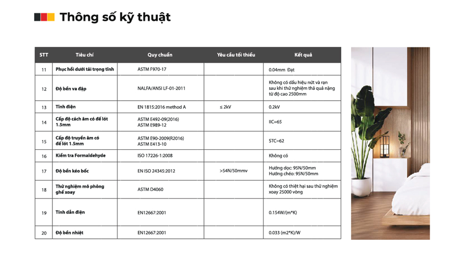 Khả Năng Chống Cháy: Đạt tiêu chuẩn chống cháy Châu Âu, đảm bảo an toàn tối đa trong sinh hoạt hằng ngày.