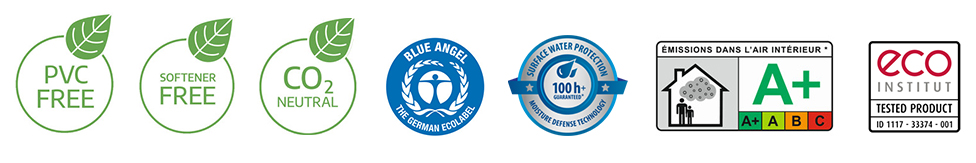 - Ván lót sàn Binyl không chứa PVC và không có chất làm mềm. Ván sàn được chứng nhận với thương hiệu sinh thái nổi tiếng Blue Angel và được công nhận bởi Cologne eco-INSTITUT