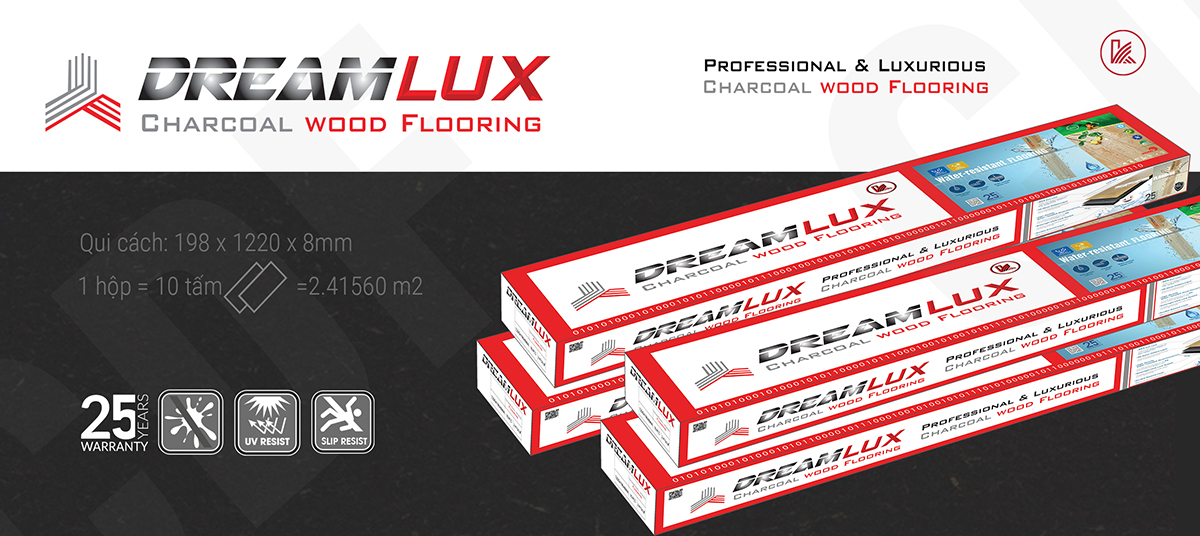 | Tên sản phẩm | Sàn gỗ Dreamlux 8mm cốt đen siêu chịu nước |