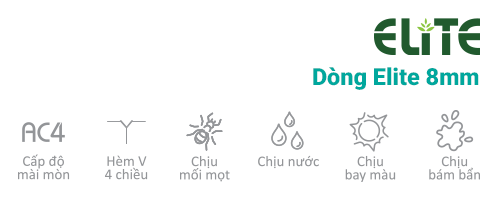 + Tăng cường công nghệ AQUA BLOC được công nhận là sàn gỗ siêu chịu nước (trương nở <10%).