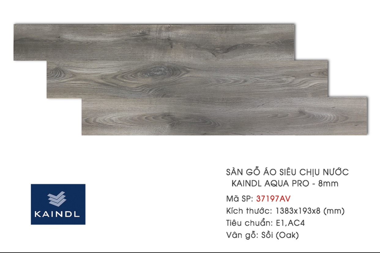 Sàn gỗ Kaindl là thương hiệu sàn gỗ công nghiệp cao cấp được sản xuất tại Châu Âu (Salzburg Cộng Hòa Áo). Kaindl có tuổi đời gần 100 năm phát triển, đây là một trong những thương hiệu sàn gỗ mang tính toàn cầu. Kaindl không chỉ được ưa chuộng bởi vẻ đẹp tinh tế sang trọng bề ngoài mà còn bởi cốt sỗ sạch theo tiêu chuẩn khắt khe E1.