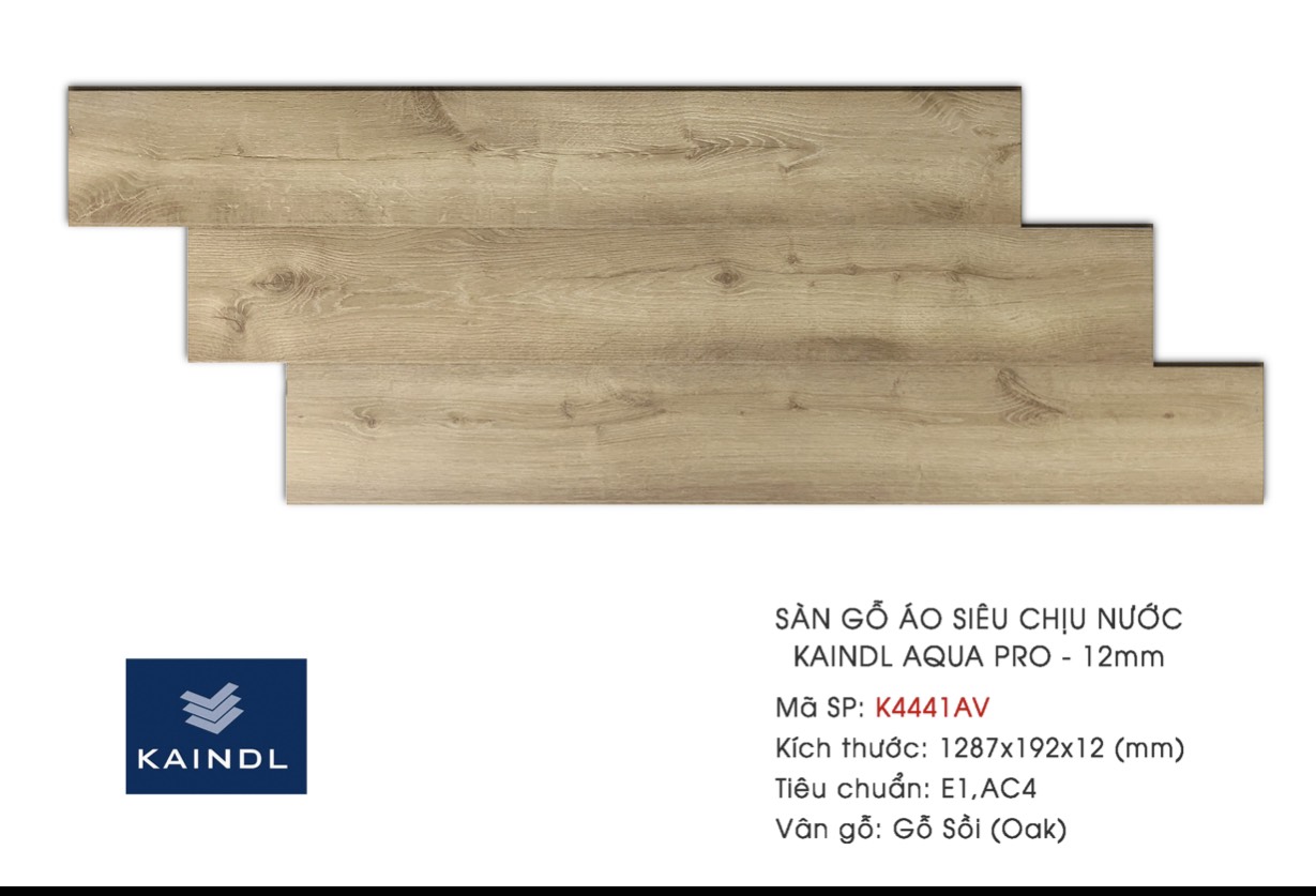Sàn gỗ Kaindl là thương hiệu sàn gỗ công nghiệp cao cấp được sản xuất tại Châu Âu (Salzburg Cộng Hòa Áo). Kaindl có tuổi đời gần 100 năm phát triển, đây là một trong những thương hiệu sàn gỗ mang tính toàn cầu. Kaindl không chỉ được ưa chuộng bởi vẻ đẹp tinh tế sang trọng bề ngoài mà còn bởi cốt sỗ sạch theo tiêu chuẩn khắt khe E1.