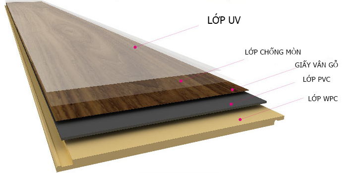 Lớp bề mặt: phũ UV chống bay màu, bảo vệ sản phẩm ảnh hưởng tác động môi trường, làm sạch dễ dàng hơn.