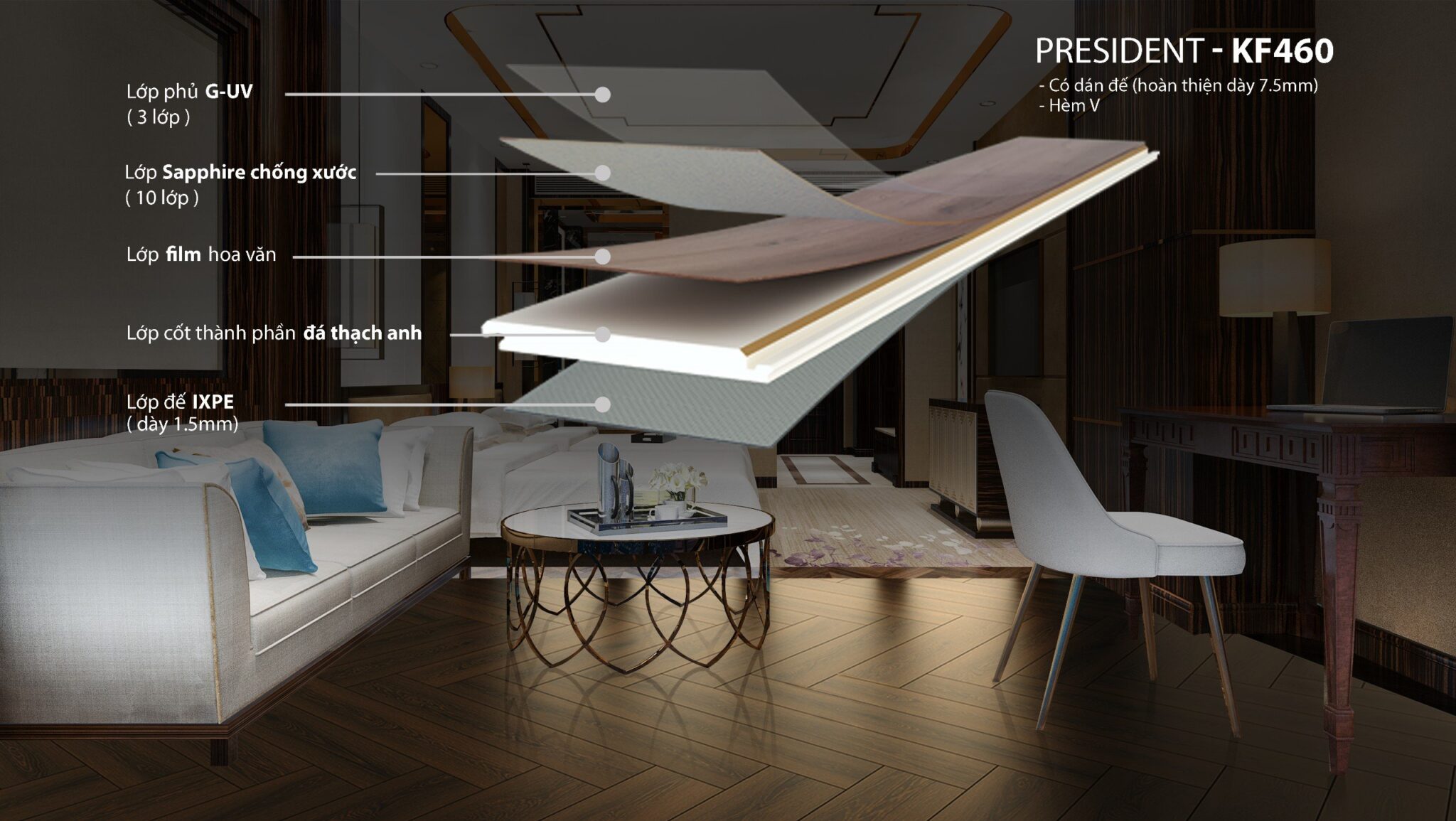 Sàn Thạch Anh Kobler President KF460 với cấu tạo gồm 5 lớp, cụ thể: